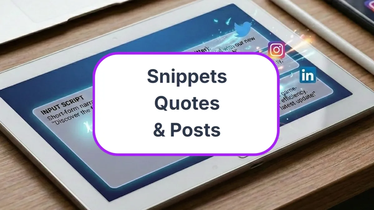 Snippets, Quotes & Posts is a customGPT that takes short scripts and produces ready-to-use promotional text for common platforms.